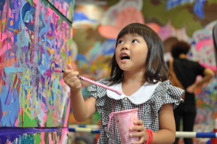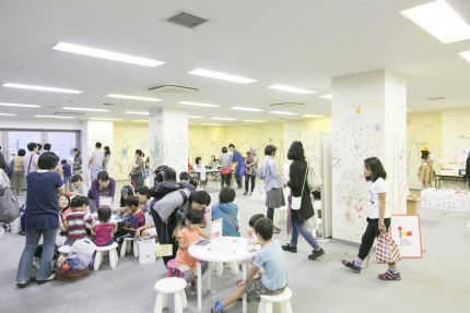 Digital Children’s Book Fair was held on the second floor, sharing the space with ‘Eponte’s Forest’ workshop booth. Prior to the workshop, children decorated the walls and floor using the ‘Eponte’ stamp. ‘Eponte’ is an educational stamp which CANVAS supported Shachihata Inc. with its planning and development of the toy. The stamped walls created a very cute environment!